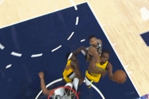 顽强!内史密斯冲击内线 变节奏上篮打中帮助步行者再度扳平