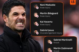 一线队锋线仅剩2人阿森纳伤员:小马丁、约克雷斯、厄德高...