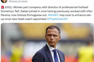 紧随主帅佩雷拉步伐,奥恩斯坦:狼队总监多梅尼科-泰蒂离职