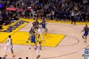卖力防守!库里紧贴古德温造成对手掩护犯规