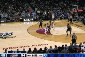 还是嫩!埃奇库姆中线被大球防守干扰差点失误 强突上篮再被帽