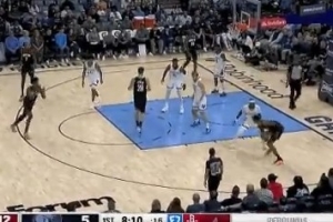 小贾巴里背打波普&强顶到中路中投命中 火箭14-5打停灰熊