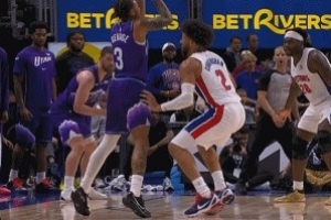 挑战成功!基昂特·乔治贴着CC出手三分吹进攻犯规&爵士挑战成功
