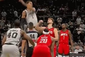 你自己来就好!申京和文班亚马跳球 直接放弃&目送文班拍走球权