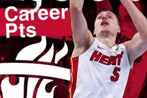 目前,约维奇已经得到10分,个人生涯总得分突破1000大关,这是他生涯第116场比赛。
