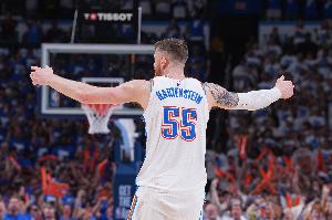 玩起来了!哈滕血帽威少 进攻端背对篮筐出手离谱偏出