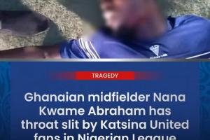 体育资讯11月09日讯 据外媒Africa soccer报道,在尼日利亚超级足球联赛周六卡齐纳联队与巴拉乌的比赛中发生了一起骇人听闻的事件,加纳中场球员纳纳·夸梅·亚伯拉罕在参与打入扳平比分的进球后遭到主队球迷的割喉。
