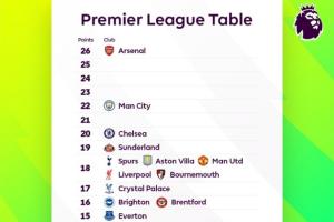 体育资讯11月12日讯 英超官方晒图英超的“积分榜”,这份榜单以积分为序号,不以排名列出。