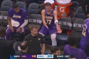 首节落后12分!东契奇在板凳席与八村塁积极讨论比赛!