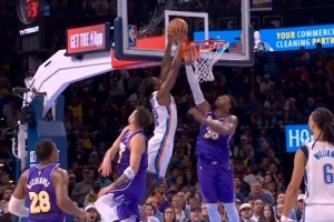 摧枯拉朽!卡森·华莱士底线突破 腾空暴起力压斯玛特双手隔扣