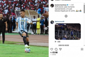 劳塔罗晒出在比赛中的照片,并配文写道:“代表祖国出战的每一刻都让我无比享受,感谢安哥拉球迷的爱。”