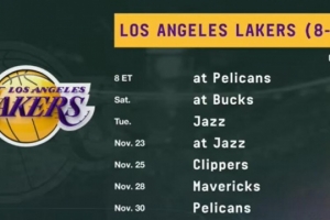 甜蜜赛程来啦!湖人未来7场对手 仅雄鹿胜率超过五成