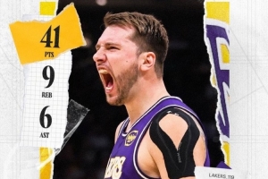 统治比赛!湖人发布东契奇41+9+6数据海报:赛季第四次单场40+