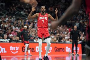 还得你来!杜兰特冲击篮筐连中两球 率队迫近比分打停魔术