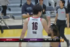信心提升巨大!杨瀚森第二个关键三分轰进激动挥拳庆祝!