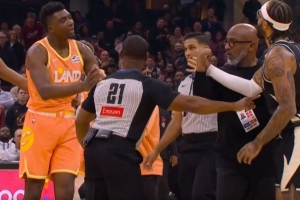 布莱恩特挡人时推倒特伦特引发小冲突&布莱恩特吃T 随后两人和解