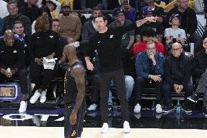 湖人周二的开局迅速加剧了这些质疑。詹姆斯的第一个进球——来自一次为他设计的三分战术——直到第二节湖人落后7分时才投中。