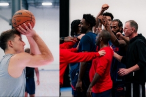 近况不佳&1胜8负!快船发布训练照:小卡给全队鼓劲 哈登心情不错