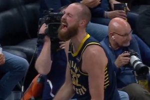 技惊四座!赫夫虚晃后突破 直接单臂滑翔隔扣卡尔克布伦纳!