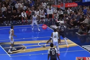 克莱底角三分瞄了一眼 竟然打到了篮板侧沿
