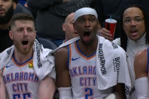 这氛围!杰林垃圾时间救球摔老狠:SGA吓歪嘴 哈滕捂脸