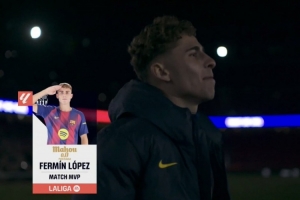 1球1关键传球+3造犯规!官方:费尔明当选巴萨vs毕巴全场MVP