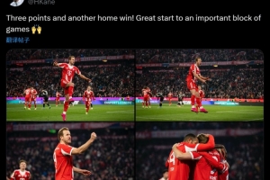 凯恩社媒晒庆祝照:主场3分到手!一段关键赛程迎来完美开局!