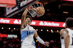 新鹰王?杰伦·约翰逊最近5场场均25分11.8板9.2助2.4断