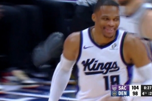 越战越勇!威少底角接球 迎着防守果断开炮三分命中