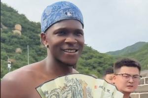 开美颜了?华子直播逛长城赤裸上身持扇子&兄弟拿刀坐骆驼我舞旗