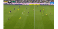 差一点!梅西接布斯克茨过顶球杀入禁区,随后的射门偏出远端立柱