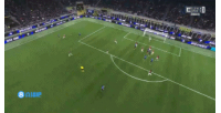 差一点!梅西接布斯克茨过顶球杀入禁区,随后的射门偏出远端立柱