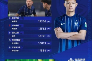 中超第30轮跑动榜:三镇两将跻身前五,钟晋宝13356米居首