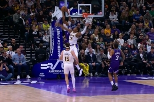 天赋溢出!爵士5号秀贝利反击 单臂空接滑翔暴扣!