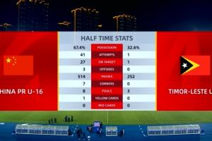 2分钟1脚!U16国足狂轰41脚射门打进14球,东帝汶U16全场1射门