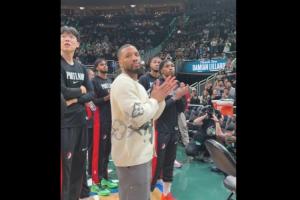 雄鹿主场播放视频致敬 利拉德指天捶胸示意 身后的小杨有点懵