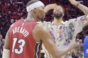 浓眉赛后和阿德巴约拥抱 还朝热火主场球迷疯狂飞吻