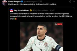 C罗不会因染红缺席世界杯!摩根:正确的判定!他在对抗被拉球衣