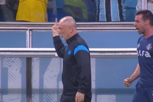 格雷米奥主帅回应竖中指:针对的是一名出言不逊的球迷而非所有人