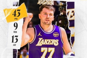 又是平平无奇的一天!湖人官方发布东契奇43+9+13数据海报