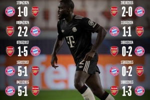 拜仁官推晒近10次与阿森纳交手战绩:拜仁6胜2平2负占据优势