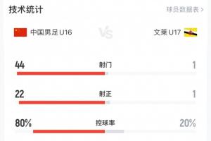 太残暴了!U16国足全场数据:44射门22射正轰入12球,文莱仅1射门