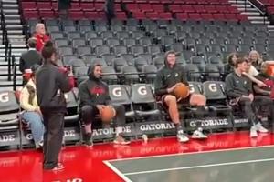 克林根&利拉德从替补席坐投三分 姜还是利拉德这样老的辣一些啊~
