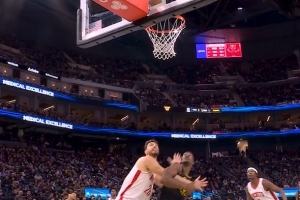 小范围配合!申京禁区内抛传助攻阿门空接暴扣