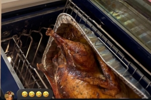 你也想吃?感恩节之 詹姆斯晒自家宠物狗盯着刚出炉的火鸡:心情