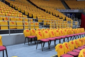 气氛到位了!五棵松看台铺满“为梦想,正当燃”助威T恤