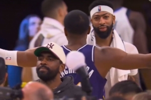 浓眉赛后眼神飘忽 八村塁张开双臂送上大大的拥抱