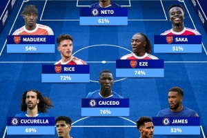 德转球迷票选切尔西+阿森纳阵容:凯塞多、赖斯、库库、萨卡在列