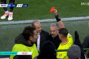 VAR介入补时点球!阿莱格里暴怒质疑裁判,被直红罚下