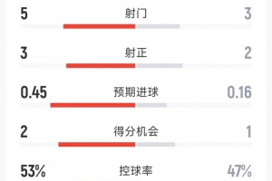 体育资讯11月30日讯 美职联分区决赛迈阿密国际对阵纽约城半场战罢,迈阿密国际2-1暂时领先,以下为双方半场数据对比: